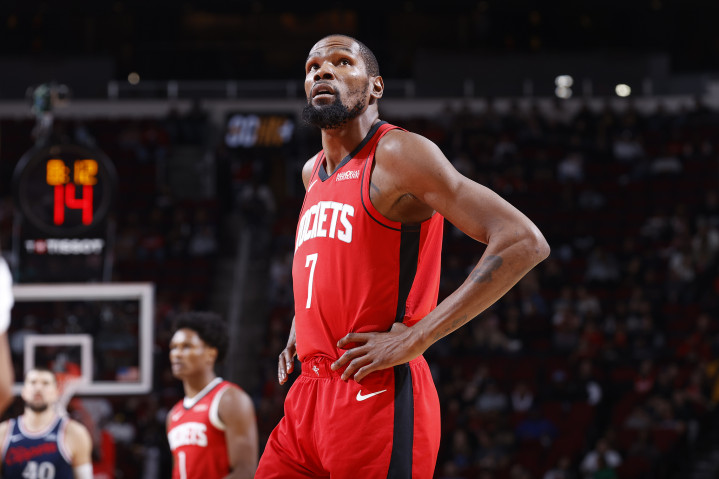 中场休息归来,第三节杜兰特终于找回准星,外线轰进三分、连续两次中投得分以及再中三分,单节5投4中独砍13分,不过这一节火箭一直未能反超比分,三节打完80-82落后2分;期间杜兰特试图靠人强攻,却被对手撤凳子,失衡摔倒失误。